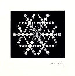 Known to be Bentley’s most complex montage, Snowflake Made Of Snowflakes contains over 200 of his snowflake photomicrographs in various sizes and designs. A stunning tribute to many years of working with snow crystals and understanding their structural patterns. Reproduced from an original glass plate negative from the archives of the Jericho Historical Society. Double matted (white on white) and framed in an American made, classic crown molding, wood frame in black or is available just matted. Prints include a Bentley fact sheet and a Certificate of Authenticity.